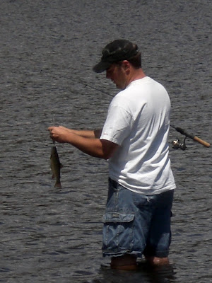 He both got our fishing licenes and did a little fishing. But the fishing wasn't all that good. Though, as I've heard a bad day of fishing is better than a good day at work. We did keep one to eat, and it was delicious.